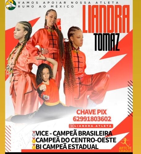 Olá! Sou Liandra Tomaz praticante das artes marciais capoeira e atleta de Kung Fu. Conheci o Kung Fu matando aula na escola e hoje sou apaixonada e me dedico a essa arte inteiramente.