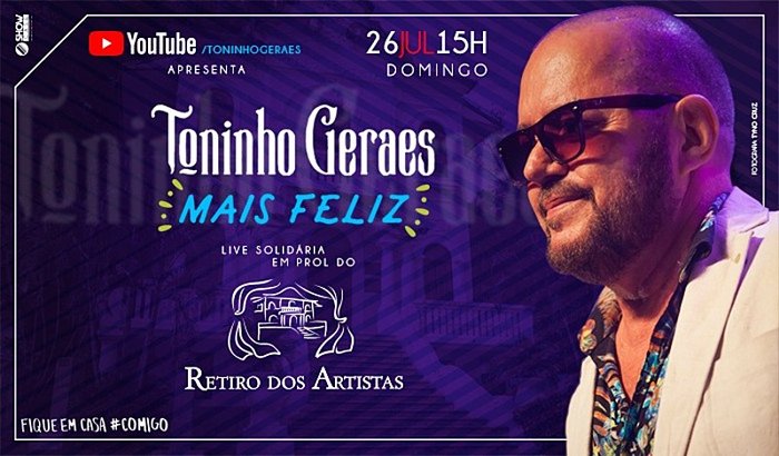 Diante deste cenário, o cantor e compositor Toninho Geraes vai realizar sua 1° Live no youtube chamada MAIS FELIZ! Em virtude da pandemia do novo vírus que assola o mundo, Toninho Geraes em parceria com o Renascença Clube decidiram criar uma campanha e toda arrecadação monetária será destinada para os profissionais de eventos e o asilo Retiro dos Artistas!
