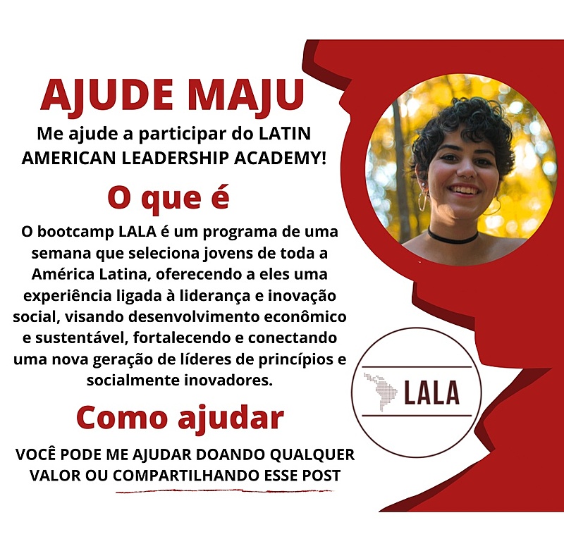 Recentemente fui selecionada no Latin American Leadership Academy (Academia Latino-Americana de Liderança), um programa que significa a chance que tenho de aprender muito e compartilhar também, onde vou ter a oportunidade de desenvolver habilidades de liderança e inovação social e mais tarde poder trazer esses ensinamentos a nossa sociedade, ajudando a impactar positivamente a minha comunidade. Com certeza, essa oportunidade me motivou a aplicar e acreditar nesse sonho.