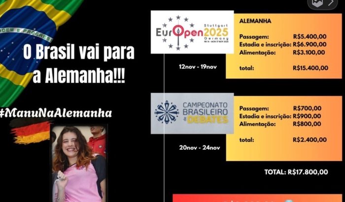 "Para tornar esse sonho possível, preciso de apoio financeiro para cobrir os custos da viagem, hospedagem e alimentação"