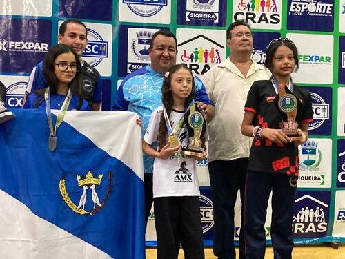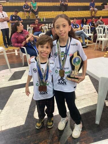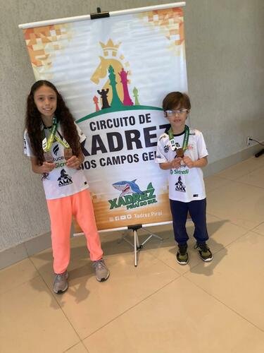 Maria Luiza, de 12 anos, e seu irmão João Eduardo, de 7, são enxadristas talentosos e apaixonados pelo xadrez, incentivados pelos pais desde cedo. Maria Luiza tem dois anos de experiência em competições e já conquistou títulos como Campeã do Blitz no Paraná e Vice-Campeã do Campeonato Brasileiro de Xadrez Escolar 2024. Ela está entre as cinco melhores no Festival Nacional da Criança 2024 e possui diversas medalhas e troféus.