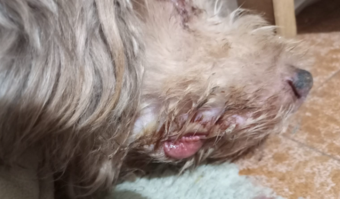 Esse é o Marley, ele tem 10 anos e nao tem raça definida…mas é um amor de pet que esta sofrendo😞