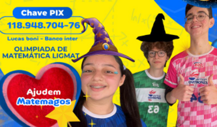 Eu sou a Melissa, mãe de Lucas Boni, integrante da Equipe Matemagos e criei essa vaquinha pois precisamos arrecadar R$ 10.000,00 para compras as passagens aéreas de ida e volta, Recife - Curitiba, para eles participarem da etapa final da Ligmat 2024 e irão representar nosso Estado Pernambuco. Para saber mais você pode visitar e seguir a página no Instagram: @ligmatbrasil