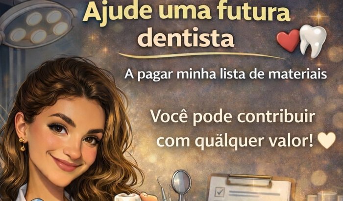 Eu já estou pagando a lista, me organizando e fazendo o possível para dar conta de tudo. Porém, ainda preciso de R$ 2.900,00 para conseguir finalizar o pagamento e continuar as atividades sem pendências.Quem faz Odonto sabe que os materiais não são opcionais , são essenciais para as aulas práticas e atendimentos.Se você puder contribuir com qualquer valor, eu ficarei imensamente grata. E se não puder ajudar financeiramente, compartilhar já faz muita diferença 🤍