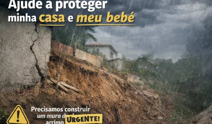 Com as chuvas, o terreno ao lado da casa está cedendo e já surgiram trincas nas paredes. Precisamos construir um muro de arrimo com urgência para evitar que a situação piore e coloque nossa casa em risco.