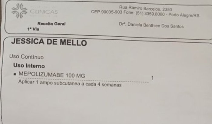 Oi me chamo Jéssica de Mello tirei um pulmão devido a vários nódulo calcificado tenho derrame pericárdio no coração agora tô com vários nódulo no pulmão que fico tô com a capacidade respiratória de 44% desse pulmão preciso muito toma essa injeção na barriga pra poder respirar melhor e melhorar minha qualidade de vida que não está nada boa peço ajuda de quem pode compartilhar e me doa qualquer valor preciso que 130 pessoas ajude com 100 reais pra arrecada o valor da medicação que custa 12. Mil e 800 reais é de extrema urgência que necessito dessa medicação já entramos com um pedido judicial por favor quem pode ajuda será muito bem vindo qualquer valor