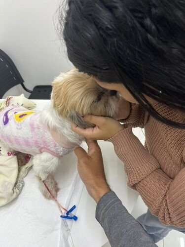 Olá! Eu sou a Lollinha e estou passando pra contar um pouquinho da minha história. Desde sempre fui uma cachorrinha muito alegre, sempre muito carinhosa com todos, principalmente com a minha mamãe. Sempre fui muito esperta e comilona, gosto de passear e de andar de carro. No dia 03 de julho fiz minha primeira internação na clínica veterinária, onde foi constatado uma anemia severa por decorrência da doença do carrapato e a minha específica era ANAPLASMA. Minha mamãe logo inciou meu tratamento porém após o início do mesmo eu já comecei a ter uma piora, onde meu hematócrito chegou em 14% e o ideal é entre 37% e 55%. Tive que realizar minha primeira transfusão de sangue pra que eu pudesse ficar mais forte pra enfrentar essa doença. Após a primeira transfusão de sangue, meu hematócrito subiu muito bem como o esperado, chegando em 30. Minha mamãe me manteve internada por 4 dias, e infelizmente precisou pedir alta revelia por questões financeiras. Continuamos meu tratamento em casa, tive uma melhora significativa, pois voltei a comer (minha mamãe faz uns franguinhos bem gostosos que eu amo) e voltei a me sentir ativa novamente. No dia 14 de julho eu comecei a ficar mais fraquinha, voltei a ficar enjoadinha pra comer e minha mamãe estranhou. Meus pelos já não brilhavam e meu rostinho pareciam pálidos como minha mucosa. Minha mamãe correu comigo pro veterinário novamente e após um hemograma vimos que meu hematócrito havia chegado em 8. Corremos para iniciarmos mais uma transfusão de sangue. Fizemos todo o tratamento na clínica e após 1 dia de transfusão eu já estava bem melhor, voltei a comer, latir, brincar com as auxiliares do vet, fiquei muito feliz, pois eu queria muito viver e ficar com minha mamãe de novo. Após isso, continuamos meu tratamento em casa, com os cuidados de uma veterinária maravilhosa e com isso ganhei mais peso, estava comendo bem, parei de sentir dores e estava bem ativa. A dois dias atrás (02/08) minha mãe começou a perceber manchinhas pretas na minha perninha traseira, bem como escamação e queda de pelos. Minha veterinária logo pediu que nós fizéssemos um teste pra saber se eu estava com Lashmaniose e pra nossa surpresa, deu positivo.