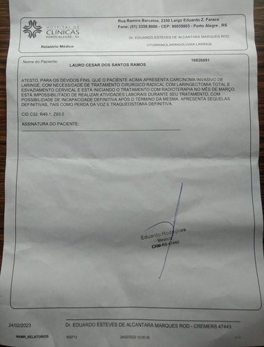 Me chamo Lauro César, e venho através do Vakinha on line pedir um apoio aos amigos, colegas, amigos dos amigos, uma ajuda para comprar uma *LARINGE ELETRÔNICA*, pois conforme *atestado em anexo* eu não vou falar mais. Preciso também, continuar com os tratamentos, que serão longos, portanto precisarei de dinheiro para manter o tratamento. Eu estava trabalhando, quando fui fazer a cirurgia de esvaziamento cervical e laringectomia. Estive no meu trabalho após alguns dias após recuperação, quando fui dispensado pelo proprietário, *sem motivo algum*, onde que não recebi nada de salário e ou indenização pelos 6 anos de serviços. Portanto não tenho como manter o tratamento e despesas sem ajuda dos amigos. Qualquer valor é bem vindo.Desde já agradeço a todos, que DEUS os abençoe sempre.Meu agradecimentos.