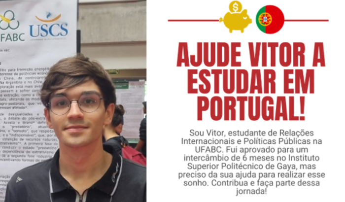 Recentemente, fui aprovado no edital de mobilidade acadêmica para passar 6 meses estudando em Portugal, no Instituto Superior Politécnico de Gaya. Esta seria uma grande oportunidade para aprimorar meus conhecimentos sobre Gestão e me tornar um gestor público mais competente. Infelizmente, o edital deste ano não contou com auxílios socioeconômicos, e meus ganhos ou os da minha família não são suficientes para minha ida. Por isso, gostaria de, com esta vaquinha, arrecadar pelo menos o suficiente para minha viagem. Se puder contribuir, será de grande ajuda e serei muito grato!