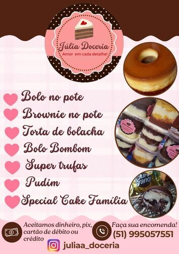 Amigos e Amigas, Organizei esta campanha em prol do meu negócio pelo qual sou apaixonada e que, neste momento, é a alternativa que eu tenho para manter eu e a minha filha, porém, devido à dificuldades para minha retirada de uma sociedade antiga, até o momento não pude formalizar este negócio e consequentemente, não tenho acesso a todos os benefícios que teria. Depois de uma parada total nas vendas, fiquei sem material e, agora, mais do que nunca, preciso de ajuda para conseguir repor e manter o mínimo para retomar a produção bem como conseguir fazer algum anúncio na minha página para reverter a visibilidade do meu negócio que está péssima, pois eu sei que o meu produto é excelente, porém, não é visto porque, até então, não tenho recursos para investir. Além disso, esta campanha vai me ajudar também a conseguir imprimir as etiquetas e os novos folders, que são essenciais para auxiliar na divulgação e criar um primeiro contato para que as pessoas saibam que meus doces existem. Qualquer ajuda é muito bem vinda e fará total diferença para o meu negócio e, desde já, agradeço muito. Convido para que conheçam o meu trabalho e experimentem meus doces! www.instagram.com/juliaa_doceria
