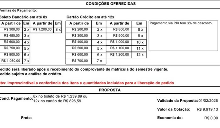 A lista de materiais desta fase chegou a cerca de R$ 10.000. Parte desses materiais está em falta nos locais onde fiz orçamento, e outra parte não é disponibilizada pela universidade. Além disso, há falta de infraestrutura e escassez de materiais no CMI, que deveria auxiliar os alunos, o que acaba transferindo todo o custo para o estudante.
