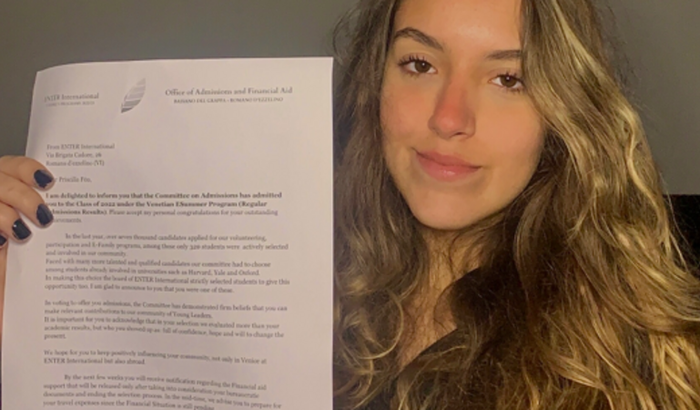 Oii, tudo bem com você? Meu nome é Priscilla, tenho 19 anos e meu sonho sempre foi viver uma experiência internacional. Mesmo ensinando idiomas, ainda não tive a oportunidade de ir para o exterior. E assim, foi com muita alegria que no dia 13 de junho, fui aprovada em um programa de verão para aprender sobre sustentabilidade e empreendedorismo pelo ENTER International!
