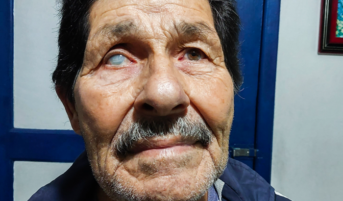 Por conta de uma cirurgia mal feita e que não foi finalizada ele ficou cego de um olho, e agora está com o outro olho comprometido com catarata, precisando urgente de uma cirurgia para não perder a visão.