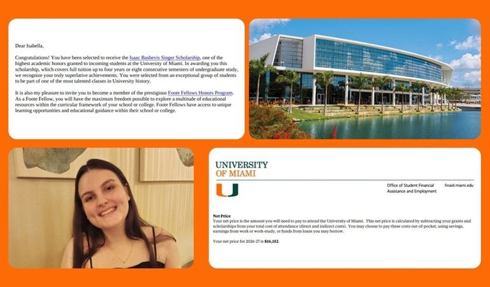 Oi! Sou a Isabella e fui aprovada na University of Miami em Engenharia Biomédica com uma bolsa de mérito de $87.000 por ano (Full Tuition)!