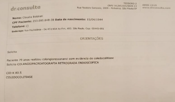 Olá gente, uns meses atrás comecei a me sentir mal e ter dores abdominais e nas costas. Diante disso e sem convênio, decidi aderir o plano do doutor Consulta, Yalo, onde pago R$39,90 por mês e tenho descontos em consultas e exames. Resolvi marcar consulta com o gastro onde foram realizados os exames: Endoscopia digestiva alta, ultrassonografia do abdómem total e Colangioressonancia, diagnosticando pedra na vesícula. O médico Dr. Renan Sado, sugeriu a realização do procedimento CPRE - colangio pancreatografia retrógrado endoscópico.