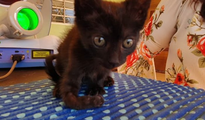 A tia Cris me acolheu provisoriamente para eu não ser abandonada. Tenho no máximo uns 2 meses e fui resgatada com a patinha completamente traumatizada. No hospital disseram que tive uma avulsão de plexo braquial, que é quando os nervos da patinha se rompem. A tia veterinária disse que a indicação é a amputação mas que tenho uma chance de voltar a ficar boa através de fisioterapia. Fiz uma sessão de teste onde tive uma pequena resposta. Infelizmente, a tia Cris não tem condições de custear o tratamento e eu preciso de mais 10 sessões para saber como será a resposta. Peço sua ajuda para eu ter uma chance de permanecer com a minha patinha.