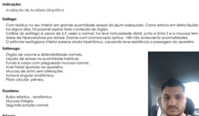 Fui diagnosticado com Acalásia Idiopática – Megaesôfago grau III, sendo o último estágio o grau IV , onde posso perder o meu esôfago. É uma doença rara que afeta o funcionamento do esôfago, impedindo que o alimento chegue corretamente ao estômago. Mesmo em jejum por dias, meu esôfago acumula uma grande quantidade de líquido e comida, causando dores, as vezes vômitos e extrema dificuldade para me alimentar e dormir. Não podendo comer inúmeros alimentos( principalmente secos, com cascas e pimentas). Também utilizo um travesseiro específico para não haver refluxo ou resíduo do esôfago que pode acabar entrando no pulmão.