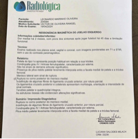Como vocês podem ver, esse eh o laudo da ressonância que precisei fazer depois de uma prescrição do Medico DR Victor Rangel especialista em joelhos.