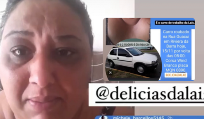 Me chamo Laís moro em Riviera da Barra, comprei meu carro com muito suor para levar minhas comidas e minha barraca na Praça do Riviera da Barra onde tiro meu sustendo e crio meus filhos. Roubaram meu carro na porta da minha casa no dia 15/11. Estou arrasada pois com ele que eu comprava todos os matérias para cozinhar, trabalhar e ir no médico pois estou na luta de conseguir uma cirurgia bariátrica pelo SUS.
