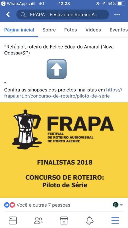 Um pouco para a minha supresa, no dia 15 de junho, em pleno "inferno astral", antecedendo meu aniversário de 31 anos, chega uma notícia: Estou entre os semifinalistas do Concurso de Roteiros, categoria piloto de série, do Festival de Roteiro Audiovisual de Porto Alegre, o FRAPA, que nada mais é do que o maior festival do gênero na América Latina.