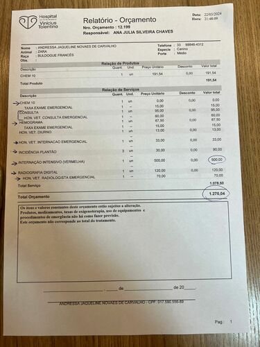 EU ME CHAMO MARIANA MARTINS DE SOUZA, MINHA CACHORRINHA ONTEM AS 20 HRS DA NOITE, COMEÇOU A SENTIR FALTA DE AR E UMA CONVULSIONOU, LEVEI PARA O VETERINÁRIO E ELA FICOU INTERNADA E FEZ EXAMES, HOJE CEDO ELA VOMITOU SANGUE, E ELA AGORA VAI PRECISAR OPERAR… EU NÃO SEI O QUE EU FAÇO MAIS, NÃO TENHO CONDIÇÕES DE PAGAR TUDO, EU IMPLORO A AJUDA DE VOCÊS POR FAVOR!!!