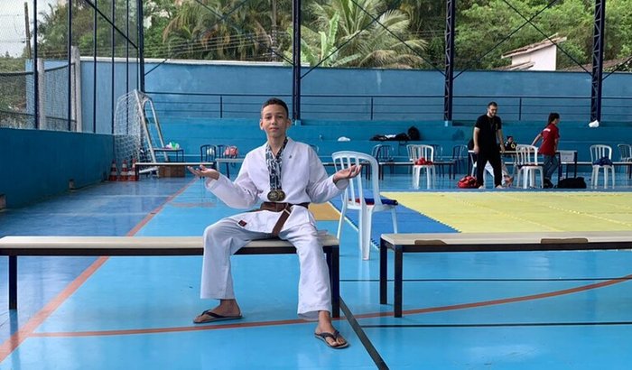 Ola, meu nome é Lucas Gabriel, tenho 15 anos, e prático a modalidade karate shotokan desde os meus 8 anos de idade, hoje sou faixa marrom e fui convidado a disputar um campeonato brasileiro de karate em Guararema-SP.