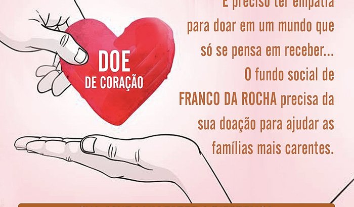 PS: Todo dinheiro arrecadado nessa vaquinha online será transferido diretamente para a conta do Fundo Social de Franco da Rocha - CNPJ 46.523.080/0001-60 e usado para compra de itens não arrecadado para compor as cestas e os kits de higiene pessoal e de produtos de limpeza.