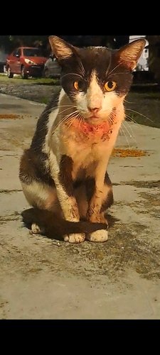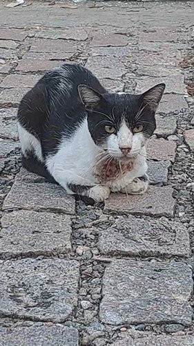 Há quase 2 meses, me deparei com uma cena desesperadora: um gatinho de rua, antes saudável, agora com uma lesão enorme no pescoço e babando muito. Desde então, o Nick só piorou. Ele emagreceu drasticamente, está fraco, abatido...