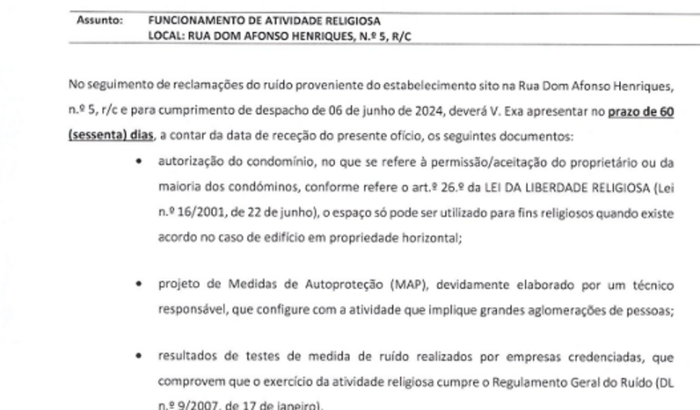 Já fizemos tudo certo para a igreja funcionar dentro da lei de Portugal, e tendo conhecimento, habitável de longa data a notificar a igreja e impede de funcionar até que a igreja providencie os devidos documentos que não foram exigidos pela câmara, no início do processo, processo esse que foi liberado pela mesma câmara.