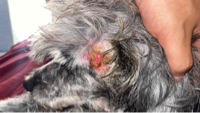 As feridas aumentam a cada dia e precisamos tratar, tem dias que ela está bem e outros não. Além disso, há alguns meses ela está tendo problemas na hora de fazer cocô, ela grita muito, pois saem muito secas as fezes.