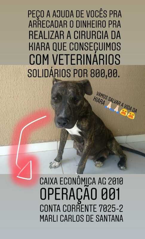A cadela kyara teve seu tempo de gestação normal e na chegada dos 58 dias ela iniciou o seu trabalho de parto, mas, com sofrimento notório a cadela não conseguiu dá a luz aos seus filhotes de forma natural. Com a chegada dos 60 dias ela deu a um filhote já morto e nos dias seguintes nasceram mais dois, porém, mortos. Hoje 05/10/2018 se completam 8 dias desse sofrimento, pois ainda tem filhotes mortos em seu útero já em decomposição, levando a CADELA a está com infecção , podendo a qualquer momento vir a óbito. Pois a mesma já não está se alimentando, com quadro de desnutrição notória. Nos ajude a salvar wssa inocente. Precisamos da CESÁRIA URGENTE, que por sua vez, tem o valor muito alto e nós (seus tutores) não temos condições de arcar com tais despesas e estamos desesperados, pois ela faz parte de nossa família. Obrigada.