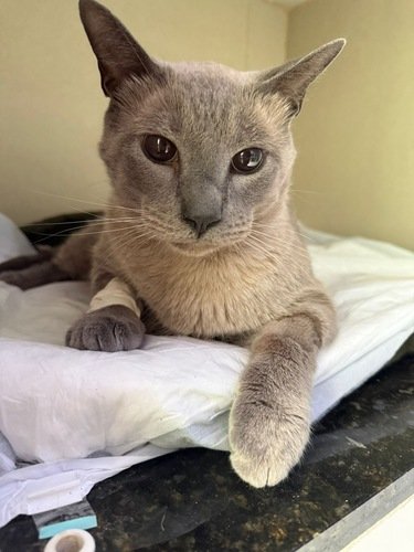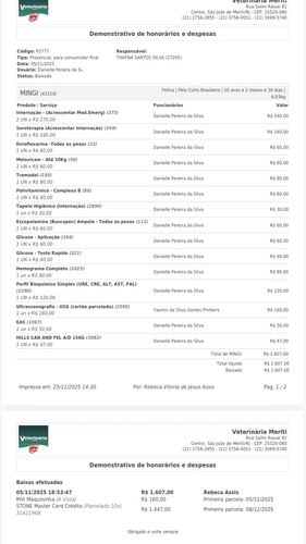 Autorizamos a primeira cirurgia em meio ao desespero de mais um caso de obstrução. Acreditei que seria realizada uma penectomia “simples”, mas ao final do procedimento fui informada de que, devido a uma complicação, Mingi passaria a urinar pela barriga. Desesperada com essa notícia devastadora, levei-o imediatamente à clínica onde ele permaneceu internado até ontem, na esperança de corrigir os erros da primeira cirurgia e evitar novas complicações. Diante da gravidade do quadro, ele precisou passar por uma segunda cirurgia de urgência, depois que os médicos alertaram que ele corria sério risco de não resistir à noite do dia 06/11. Após o procedimento, ele retornou à internação — forte, como sempre. Seguíamos apreensivas quanto ao seu futuro, mas ainda esperançosa.