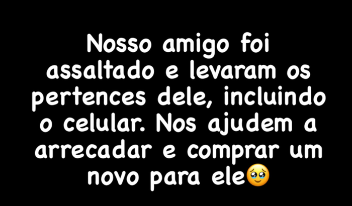 Nosso amigo foi assaltado e levaram o celular dele, nos ajudem a comprar um novo🥹