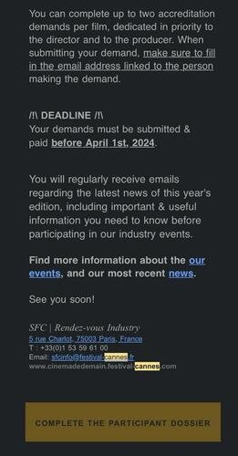 O Festival Oficial de Cannes é de 14 a 25 de maio de 2025, o Short Film Corner é de 19 a 22 de maio, mas a credencial é válida até o final do festival no dia 25 de maio, então a ideia é chegar dia 16 e ficar até dia 25 de maio.