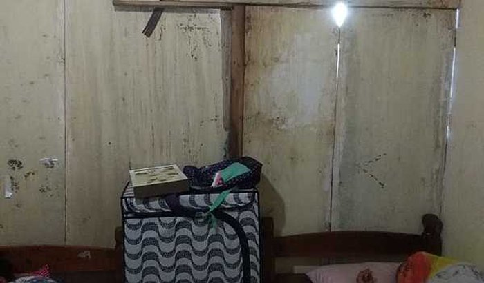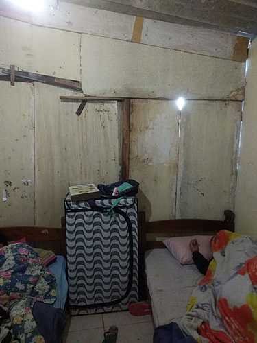 Pessoal, esse espaço do barraco precisou ser isolado. A estrutura cedeu.Quarto das crianças - o que separa este quarto da estrutura anterior é a parede (madeira). Ou seja, se a estrutura anterior ceder, este quarto pode desabar. ME AJUDEM!!!Este espaço esta cedendo, pecrisa de estrutura para não desabar.