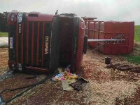 Dia 03/08 estava trabalhando descarregando a carreta qué serve como o sustento e trabalho da familia esse veiculo era o unico veículo de trabalho e e no dia do descorregamento com muito vento acabou tombando a carreta.
