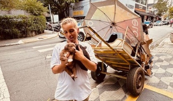 Hoje, ela não está sozinha: vive com seu companheiro e a cachorrinha Mel e seus filhotes . Juntos, eles enfrentam a rotina exaustiva de carroceiros de reciclagem, puxando o sustento do que a cidade descarta. Recentemente, a tragédia bateu à porta: Seu outro cachorro adotado por ela Brutus, o cão que era parceiro de trabalho e parte da alma da família, morreu atropelado. O silêncio da carroça agora dói mais que o frio das noites de São Paulo