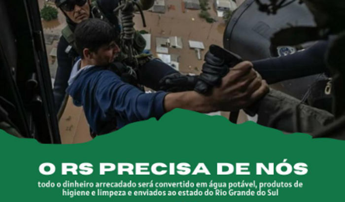 O RS PRECISA DE NOS é uma chamada à solidariedade! Diante da tragédia que atingiu o Rio Grande do Sul, cada doação conta. Junte-se a nós para oferecer apoio e esperança às famílias afetadas. Suas doações serão destinadas à compra de água, produtos de limpeza e higiene para as comunidades afetadas. Faça a diferença hoje mesmo!