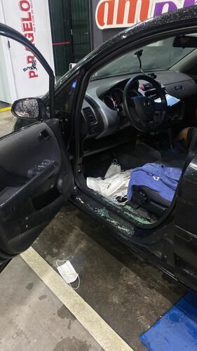 Os ladrões levaram uma lista grande de coisas além de quebrar o vidro e o painel do carro.