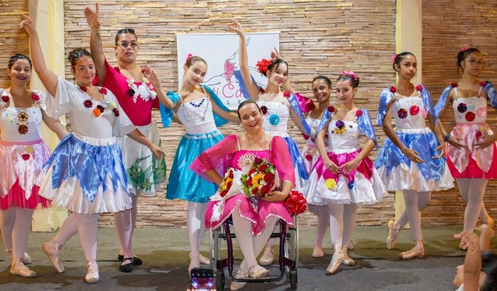 Mas eu segui firme dando as aulas de ballet para minhas amadas alunas. Dou aula e danço na cadeira de rodas. Minhas asas foram podadas mas não foram cortadas, continuo voando com as rodas da cadeira.