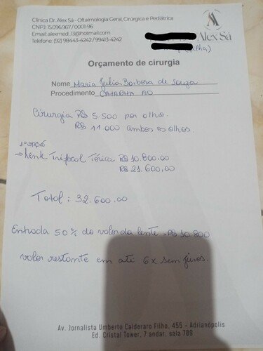Minha mãe se chama Maria Julia, viúva, meu pai faleceu em Outubro de 2022.Ela ainda não conseguiu nem receber a pensão e com isso nem o convênio hospitalar.Precisamos fazer cirurgia de catarata com urgência, quem puder ajudar eu agradeço de coração porque toda ajuda conta.