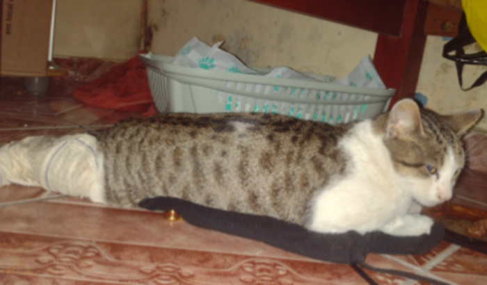 Meu gato Fofinho foi atropelado por um carro e fraturou o Femur da pata direita e o rabo, a minha filha Paloma foi no veterinario e precisamos fazer uma cirurgia Urgente no Fofinho, para fazer a Amputação do Rabo e a cirurgia no femur