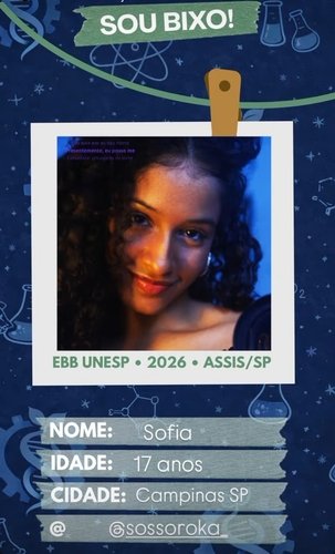 Sofia é uma menina doce, solar, inteligente. Ela entendeu desde muito cedo que precisava correr atrás da vida que queria. Sempre amorosa, prestativa, arrecada amigos por onde passa. Em meio a pandemia, quando chegou de vez nas nossas vidas, recuperou o tempo perdido. Arrasou sendo classificada duas vezes no programa "Meninas Super Cientistas" da Unicamp. Conseguiu bolsa de estudos por mérito na Escola do Sítio, durante o seu tão sonhado 9o. Ano. Estudou o ensino médio integrado no IFSP- Campinas em Eletrônica. E como se não fosse o bastante, concomitantemente, cursou o técnico em Biotecnologia na ETECAP. Terminou os cursos com resultados acima da média.