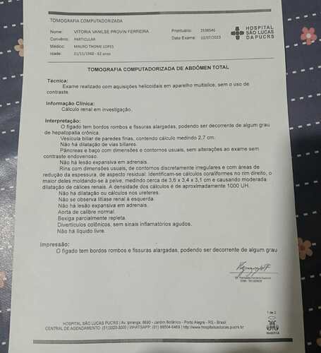 Sinto dores constantes, então essa semana fiz uma consulta com um especialista de forma particular na PUC e ele me alertou que preciso realizar a cirurgia o quanto antes, pois a pedra já aumentou de tamanho, logo irá causar danos irreversíveis ao rim e precisarei retira-lo.