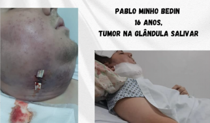 Olá, o sobrinho de uma grande amiga foi diagnosticado com um TUMOR NA GLÂNDULA SALIVAR, ele se chama Pablo Minho Bedin e tem apenas 16 anos, reside com seus avós em Rondonópolis-MT. Estamos lutando contra o tempo para poder fazer uma cirurgia o mais breve possível. Por isso meus amigos, venho aqui pedir que, neste momento possam ajudar para que conseguimos custear a cirurgia e o tratamento pós cirurgia. Do fundo do meu coração agradeço desde já a contribuição. Obrigado!
