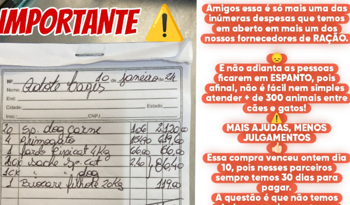 Amigos essa é só mais uma das inúmeras despesas que temos em aberto em mais um dos nossos fornecedores de RAÇÃO. 😞