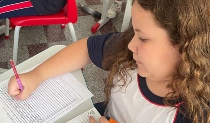 A Gabriella é do ensino particular. Conseguimos uma bolsa de estudos desde o 1 ano do ensino fundamental, atualmente estuda no Instituto São José, está indo pro 8 ano.