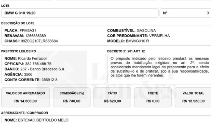 Infelizmente, fui vítima de um golpe ao tentar comprar uma moto em um leilão online. Paguei R$15.950,00 acreditando que estava fazendo um bom negócio, mas descobri que tudo não passava de uma fraude. Esse valor representa uma parte importante das minhas economias e, como muitos sabem, não é fácil lidar com um prejuízo desse tamanho.