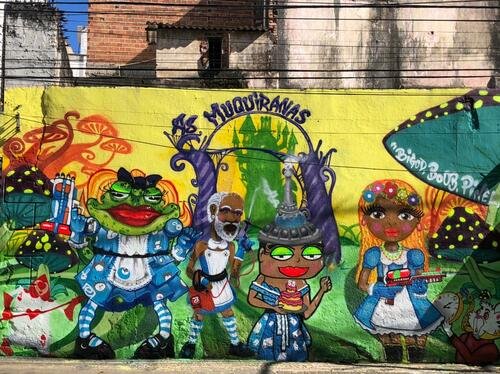 Pois é esses painéis foram produzidos por mim e mais quatro Graffiteiros, com recursos próprios tirados do nosso próprio bolso para desenvolver essa arte, homenageando o bloco mais irreverente do carnaval de salvador ,o primeiro painel em 2019 com o tema O Cabaré , no segundo painel no ano de 2020 tivemos a promessa de ajuda por parte da sede do bloco mas não se concretizou mesmo assim realizamos a produção do painel , com o tema Alice .