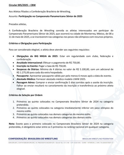 Devido a esses títulos recebi o convite para participar do Campeonato Panamericano na cidade de Monterrey - México, 8 a 11 de maior com recursos próprios, precisando arcar com os valores referentes a: